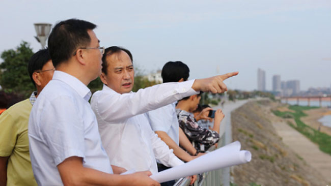 10月9日,市委副書記、市長許顯輝率赫山區(qū)、資陽區(qū)和住建、水務(wù)等部門負責人視察資江風(fēng)貌帶建設(shè)情況,整體調(diào)度施工進展等具體工作。市領(lǐng)導(dǎo)彭建忠、譚喜華陪同。