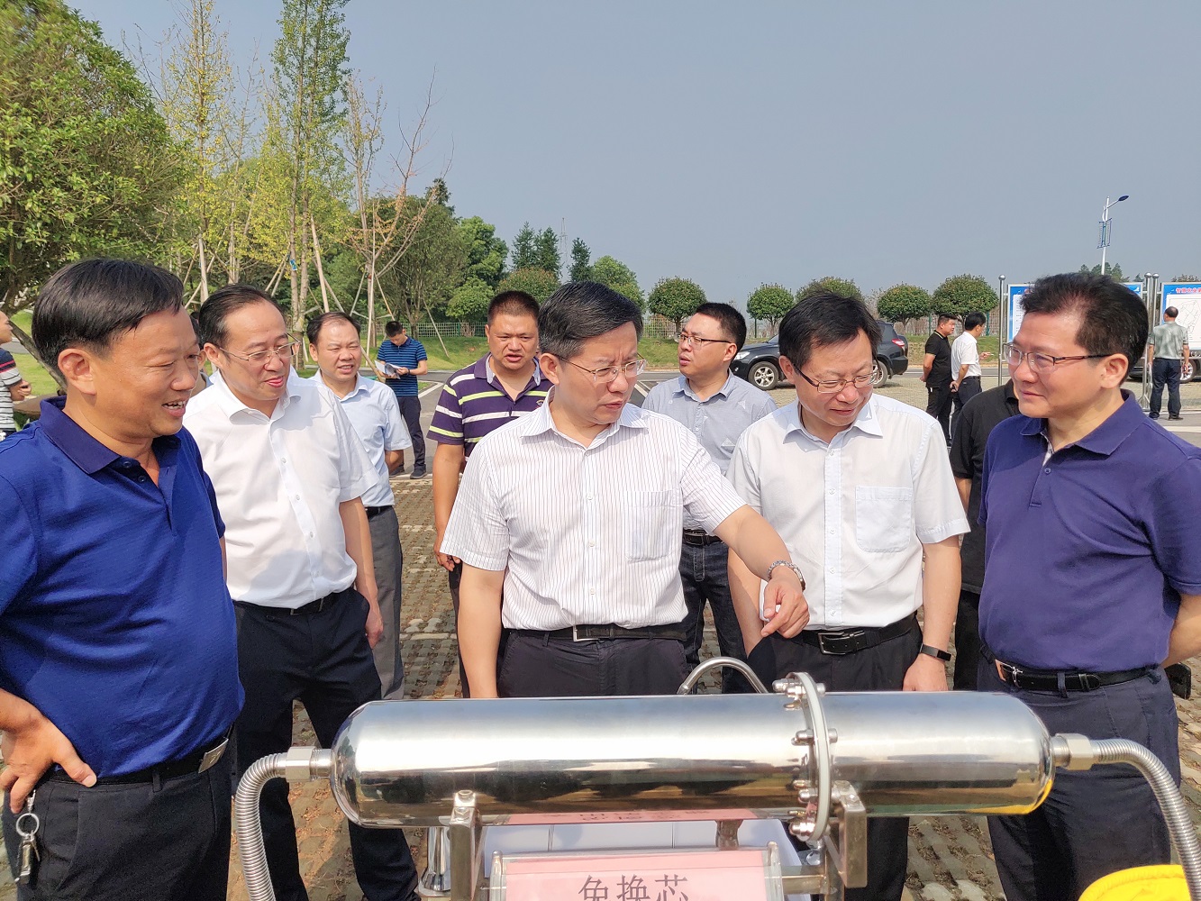 9月14日上午,由市委書記瞿海、市長張值恒 、市人大副主席徐云波、市政協(xié)黃加忠?guī)ш?duì), 赫山區(qū)委書記鄧正安、區(qū)長馬文才等領(lǐng)導(dǎo)陪同視察了由我公司負(fù)責(zé)設(shè)計(jì)施工建設(shè)的益陽市赫山區(qū)智慧農(nóng)業(yè)第一村泉交河鎮(zhèn)菱角岔村(竹泉農(nóng)牧)農(nóng)村生活污水處理環(huán)保項(xiàng)目,我們重點(diǎn)對該村生活污水進(jìn)行收集處理,在項(xiàng)目現(xiàn)場由我公司董事長蔡群文向瞿海書記等市委領(lǐng)導(dǎo)介紹了污水處理的工藝流程,我公司采用的是目前國內(nèi)最先進(jìn)的污水處理技術(shù),(即自主研發(fā)的納米高滲超低壓中空纖維膜污水處理技術(shù),簡稱MTR技術(shù)),使水質(zhì)達(dá)到《城鎮(zhèn)污水處理廠污染物排放標(biāo)準(zhǔn)》(GB18918-2002)一級A標(biāo)準(zhǔn),由我公司龔泰石教授介紹了污水處理工藝原理,獲得了市委瞿書記的高度肯定和大力贊賞,瞿書記指出,該項(xiàng)目大有可為,有很大的發(fā)展前景和空間,值得大力推廣,要發(fā)揮其社會(huì)效益,切實(shí)改善農(nóng)村人居生活環(huán)境。為改善益陽人民生活環(huán)境做出貢獻(xiàn)。