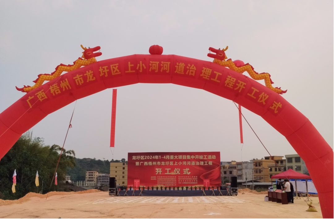 4月3日上午,龍圩區(qū)2024年1-4月重大項(xiàng)目集中開竣工活動(dòng)暨廣西梧州市龍圩區(qū)上小河河道治理工程開工儀式在項(xiàng)目現(xiàn)場(chǎng)舉行,政府相關(guān)單位及公司項(xiàng)目部人員等出席了本次儀式。