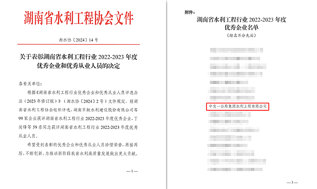 近日,在湖南省水利工程協(xié)會組織開展的湖南省水利工程行業(yè)2022-2023年優(yōu)秀企業(yè)評選評價工作中,公司榮獲“湖南省水利工程行業(yè)2022-2023年度優(yōu)秀企業(yè)”榮譽(yù)稱號,這是公司第二次獲得此項殊榮。