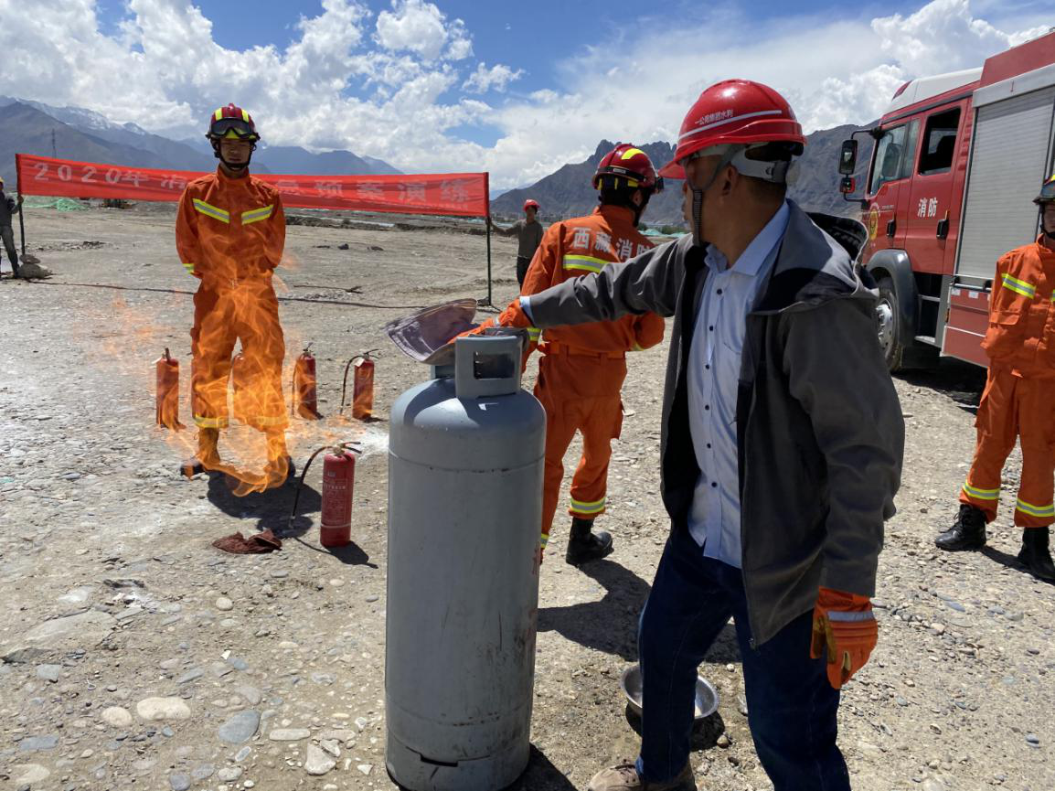 此次演練活動(dòng)特別邀請(qǐng)了拉薩市堆龍德慶區(qū)消防救援大隊(duì)消防員親臨現(xiàn)場(chǎng)培訓(xùn)、指導(dǎo)。包括對(duì)滅火器的使用、火情報(bào)警、避讓消防救援車輛、選擇正確的滅火方式、避險(xiǎn)等多方面的消防應(yīng)急知識(shí),并對(duì)火災(zāi)原因分析、搶救方法及最后統(tǒng)計(jì)人員傷亡、財(cái)產(chǎn)損失等方面做了講解。通過理論與實(shí)踐相結(jié)合,項(xiàng)目作業(yè)人員切身體驗(yàn)了正確的消防滅火技巧,有效提升了他們的安全防范意識(shí)與素質(zhì),同時(shí)在思想上也讓他們得到了改變,把礙事占地的“紅瓶子”認(rèn)準(zhǔn)成了保命的“護(hù)身符”。