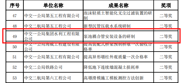 近日,由公司團洲泵站拓新QC小組申報的“泵池耦合管安裝設(shè)備的研制”課題,榮獲2021年度中國交建優(yōu)秀QC成果二等獎,同時獲得一公局集團及中國水利企業(yè)協(xié)會優(yōu)秀QC成果。