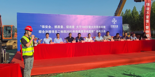 9月29日,公司大汶河水環(huán)境綜合治理項目二標(biāo)段舉行2021年第四季度“保安全,抓質(zhì)量,促進(jìn)度,大干一百天”勞動競賽動員大會。鋼城區(qū)水務(wù)局副局長孫波、大汶河項目負(fù)責(zé)人曾興雄、項目經(jīng)理李軍及業(yè)主方、監(jiān)理方、施工班組等相關(guān)人員參與了本次活動。