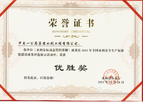 近日,公司《水利安標(biāo)動(dòng)態(tài)管控講解》成果,在水利部組織的全國(guó)水利安全生產(chǎn)標(biāo)準(zhǔn)化建設(shè)成果評(píng)選展示活動(dòng)中,榮獲“優(yōu)勝獎(jiǎng)”。