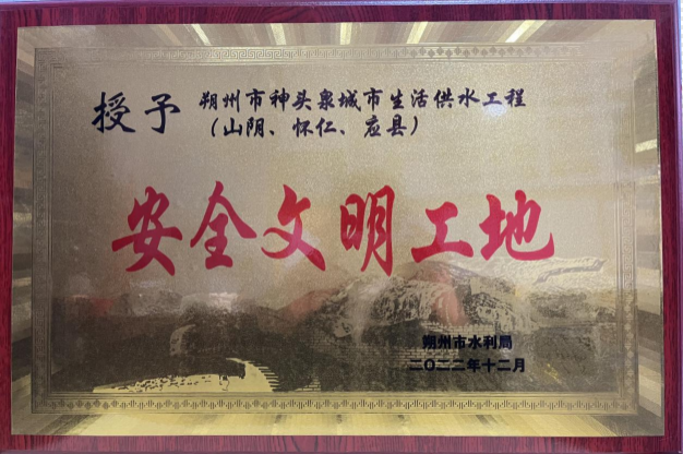 近日,公司山西省朔州市神頭泉城市生活供水工程項目被朔州市水利局授予“安全文明工地”榮譽。