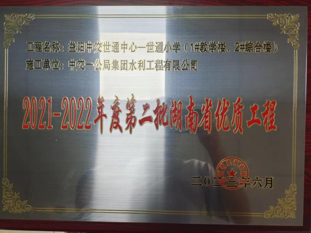 近日,在2021-2022年湖南省第二批優(yōu)質(zhì)工程評選活動中,公司益陽市中交世通中心—世通小學(xué)項目以優(yōu)質(zhì)的工程實體、完善的管理體系、高效的組織分工榮獲2021-2022年度第二批湖南省優(yōu)質(zhì)工程獎。