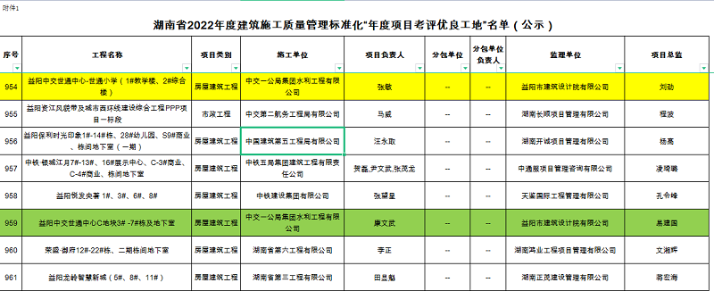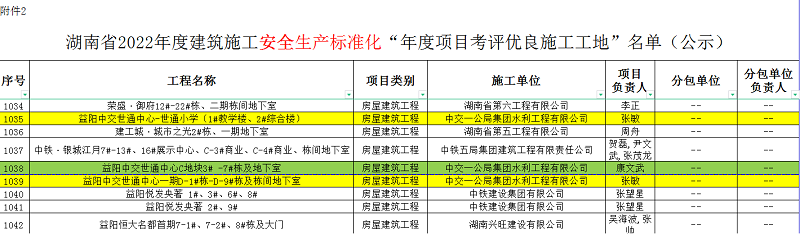近日,湖南省住房和城鄉(xiāng)建設廳公布《湖南省2022年度建筑施工質量管理、安全生產標準化“年度項目考評優(yōu)良工地”名單》,由公司承建的“益陽中交世通中心-世通小學(1#教學樓、2#綜合樓)”、“益陽中交世通中心C地塊3# -7#棟及地下室”、“益陽中交世通中心一期D-1#棟-D-9#棟及棟間地下室”等多個項目獲得“建筑施工安全生產標準化年度項目考評優(yōu)良施工工地”、“建筑施工質量管理標準化年度項目考評優(yōu)良工地”等多項榮譽。